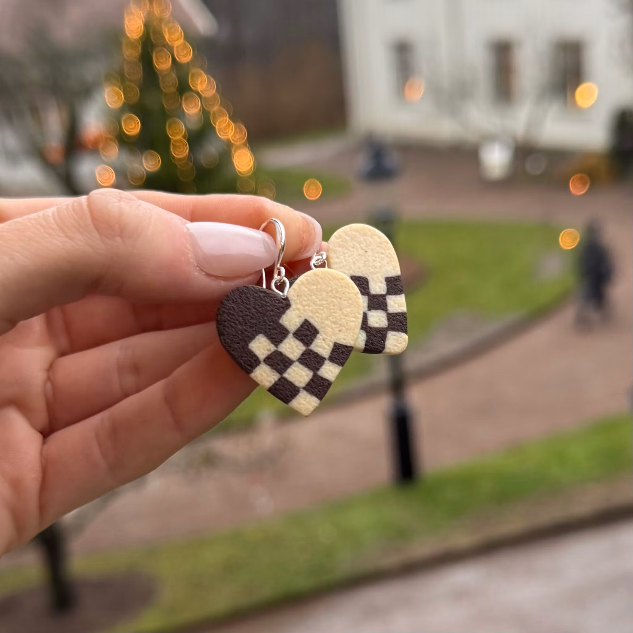 Klassiska fika-kakan schackrutor med form av hjärtan🤎
