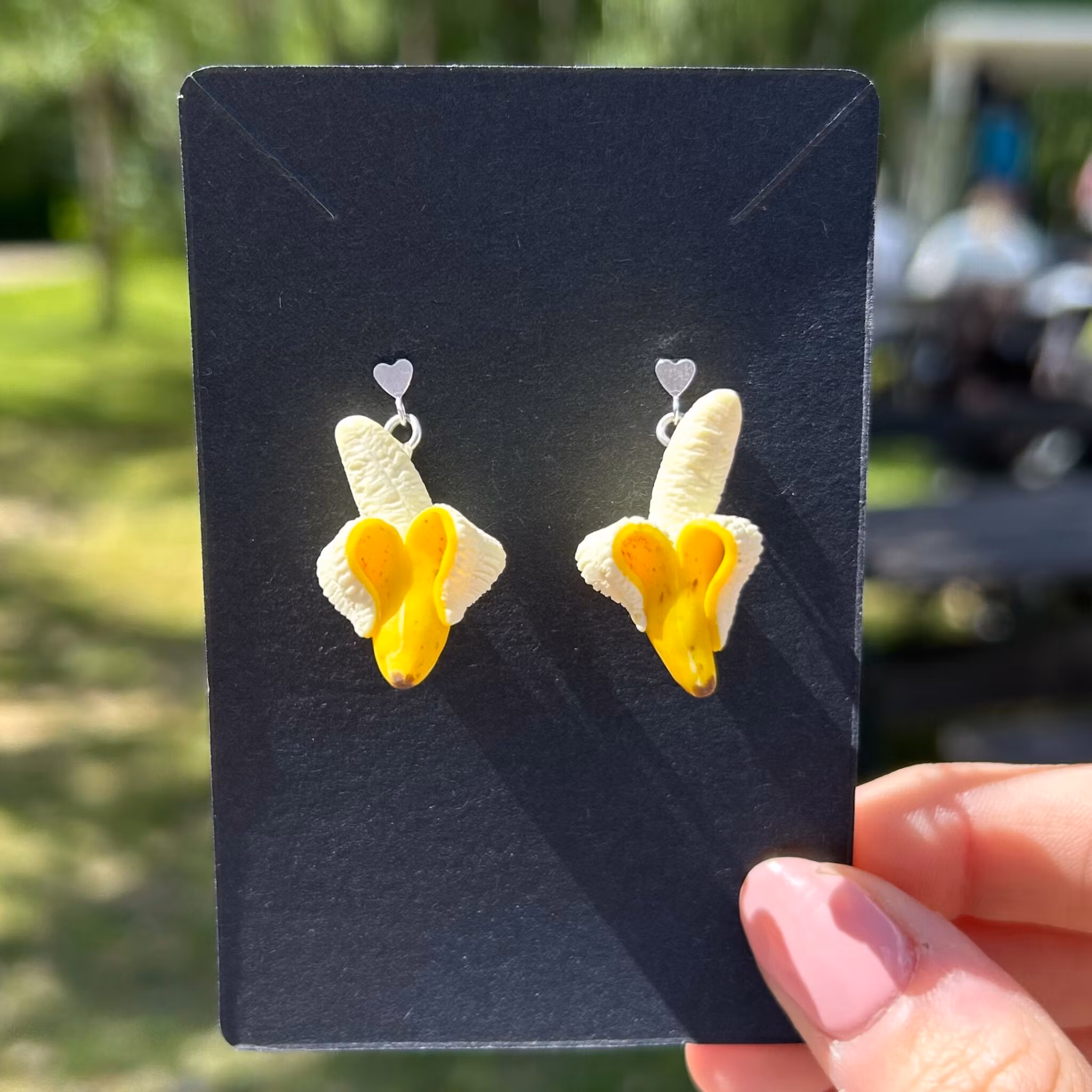 Bananer örhängen 250:- Information nedan💛 Produkten är tyvärr slut i lager Dela Information Bananer!🍌Höjd: ca 2,0 cmBredd: ca 1 cmNickelsäkra (Materialinformation)Priset är inklusive moms