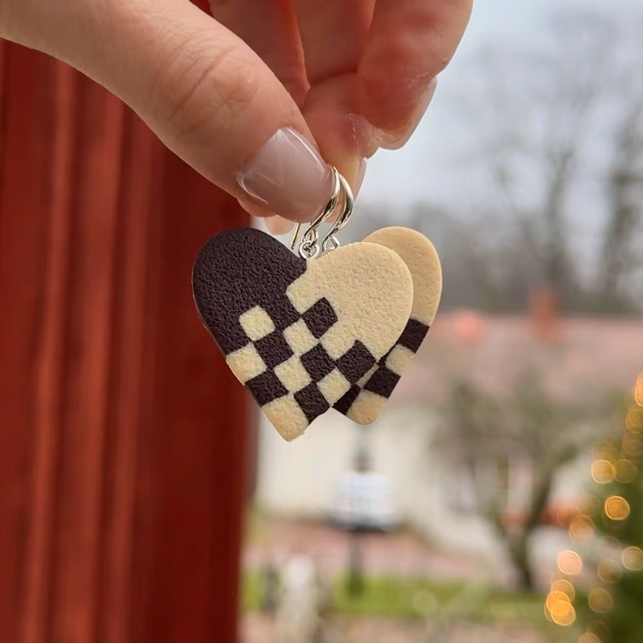 Klassiska fika-kakan schackrutor med form av hjärtan🤍