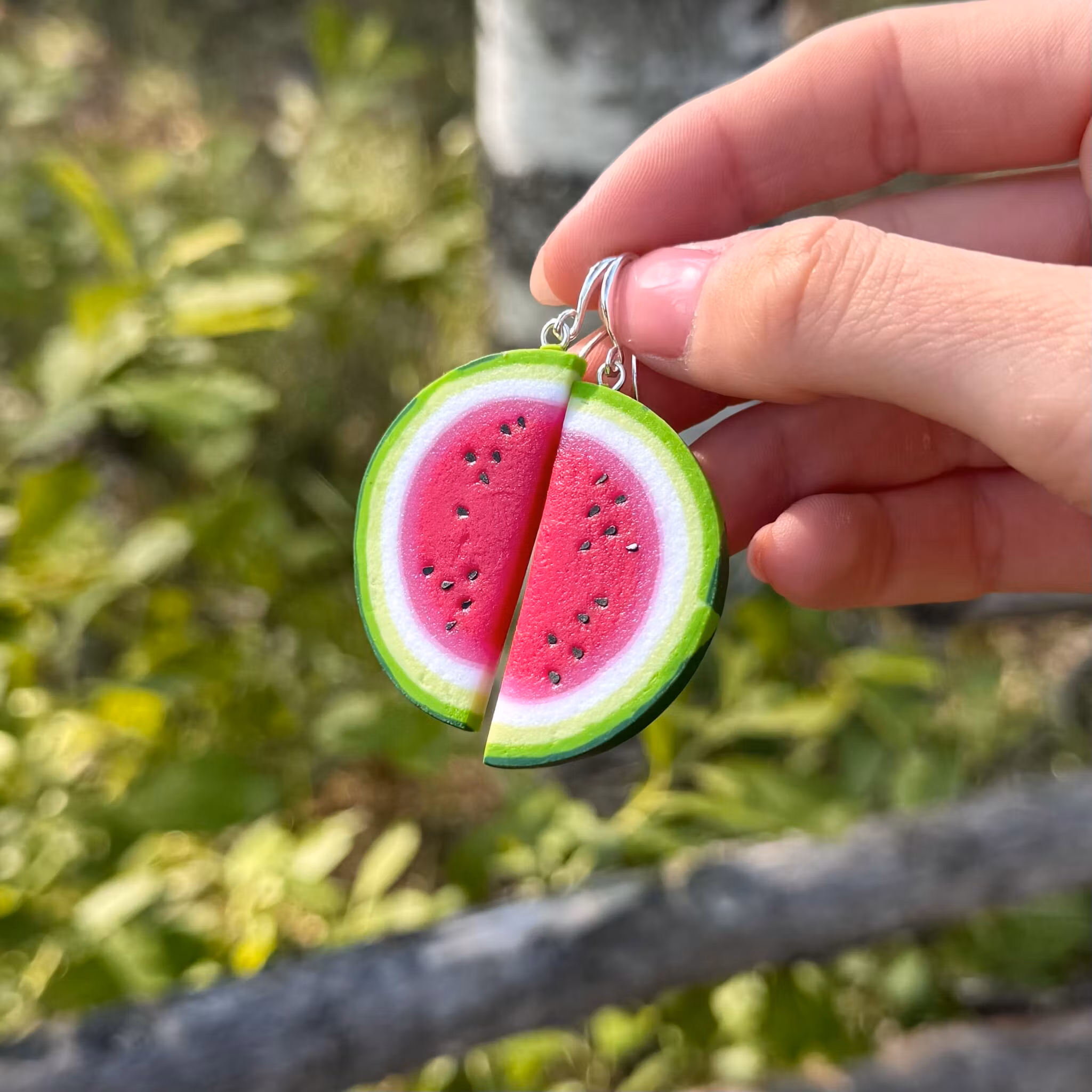 Vattenmeloner!🍉 Gjorda med lite transparent lera så solen lyser fint igenom.